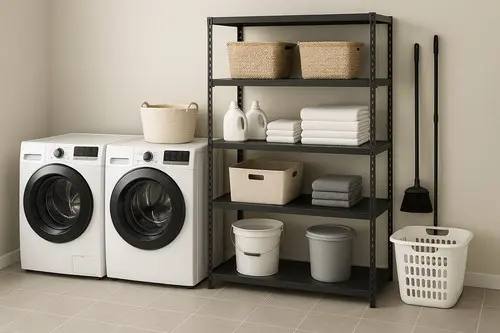האם אני יכול לשלב מדפים למזווה עם מדפים לציוד ניקוי באותו חדר? בהחלט. זהו היתרון הגדול של מדפים לחדר שירות. ניתן לתכנן יחידה אחת עם מדפים צפופים למזון, ולצידה יחידה ללא מדפים תחתונים שתאפשר הכנסה של שואב אבק, קרש גיהוץ או דליים. הכל באותה שפה עיצובית ובאותה מערכת מודולרית.